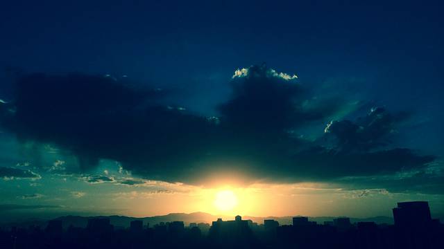 傍晚站在宾馆顶楼,短暂的旅程要结束了。城市却被一团黑云笼罩,是在预示着什么吗?