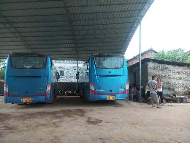 这里是杨美古镇的候车点,搭的是这种大巴车。