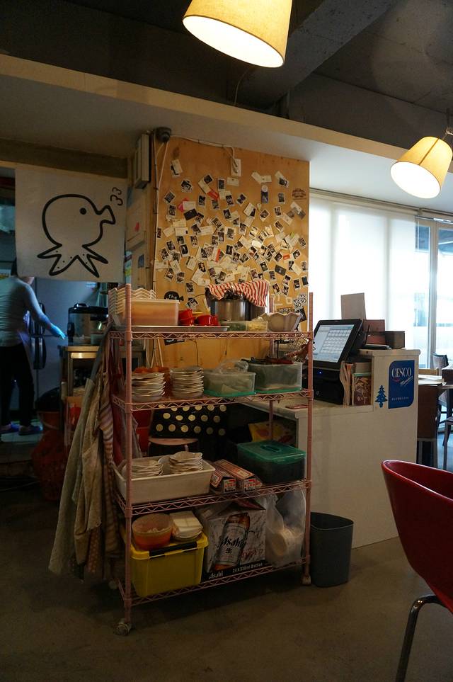 乘地铁3号线在新沙站下车,步行7分钟即可看到画着可爱的小章鱼的白色牌匾。店的外观用干净的塑料布营造出路边小吃摊般的热闹氛围,上面还悬挂了一个自行车,让人感觉店家设计颇费了些心思在里面,而进去以后却没有了大排档的印象,到是显得比较特别,比较时尚。