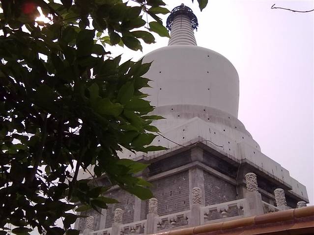 海面倒映着美丽的白塔 倒映着白塔的海面没照好...