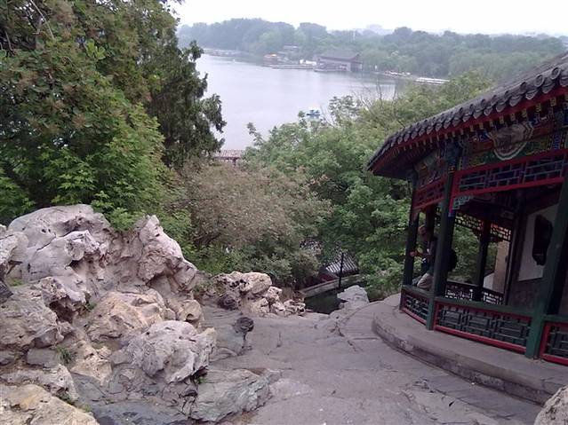 颐和园宫门,具体是哪个时间太长记不清了,颐和园有好几个宫门,不同的门有不同的旅游路线,大家去之前最好从网上找找,以免玩乱了。不过颐和园的门票上也会有地图的,两年前的学生票是25.我们五点多就从北京西站坐上公交车了,到颐和园的时候还没开门。跟外面一个晨练的老大爷聊了半天,老北京人都特别热情,一点不像课本上提到的自扫门前雪
