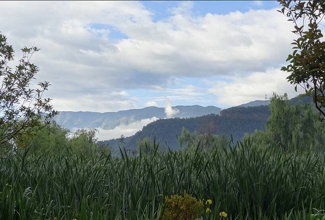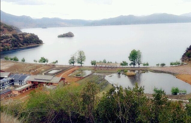 车刚驶入泸沽湖景区大门之后的景色,美得不像话。当时阴天,所以有一种仙境的错觉。