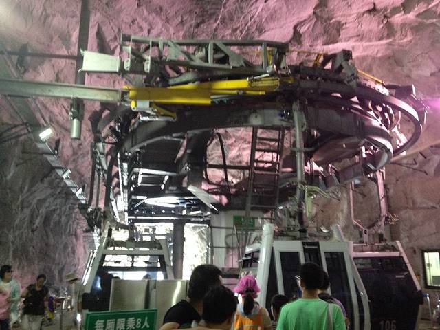西峰索道坐车处,西峰索道是在西峰靠近山顶的地方凿了一处山洞,峰外面就是几乎垂直的绝壁,因此,缆车一出洞口,那是相接的刺激。