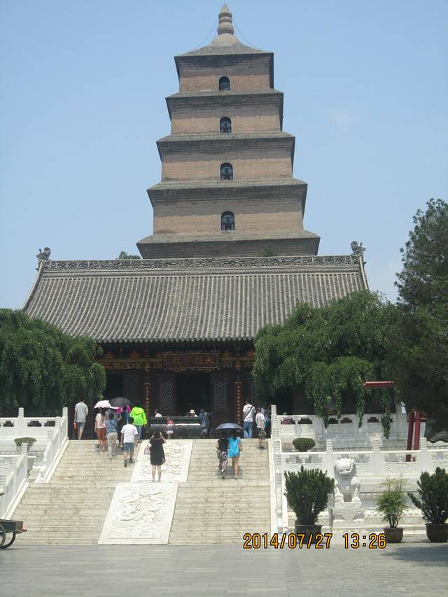 最后一天,开始不知道去哪,后来,还是决定去第三天未能如愿登塔的大雁塔,大雁塔,我们第三天去的时候,太晚了,五点多才到,那时已经只出不进了。因此,大家去大雁塔时一定要早一点,尽量在3点以前去,因为,在里面逛一圈也还是要花二小时左右的时间的。大雁塔坐落在大慈恩寺里面,大慈恩寺门票50元,如果要登塔,还需要另外买30元门票。小孩可以不用买票。