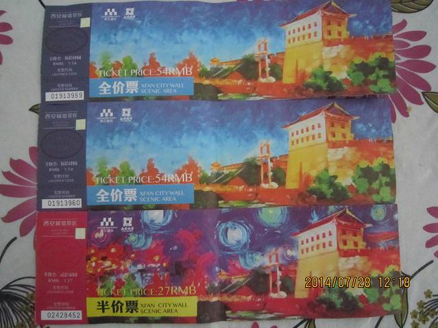吃完午餐,下午就去古城墙了。在西安火车站左边(面对火车站)不远,就有一入口,票价54元,小孩要买半票。今天西安的天气出奇的好,没有太阳,很凉快,穿短袖还感觉有丝丝凉意。是去古城墙的绝佳天气。