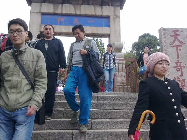 3.我们那时候赶上缆车坏了,所以只能自己下山。其实想想那个缆车也挺危险的,既然来了泰山,坐缆车真的挺没劲的,如果你想真正的了解泰山,爱上泰山,还是亲自走一走吧。下山我们走到中天门实在有点走不动了,在中天门有一个到山下天外村的车站。我记得票价貌似是30.坐车下山是风景也很美。但当时实在是累傻了,所以也没心情照相了。