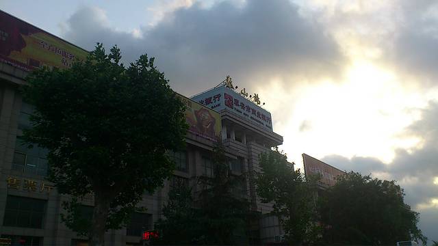 不知道大家能不能从图片里找到泰山,当时我们俩个女生一出火车站就被乌云中的泰山镇住了,简直不能想我们要爬的竟是黑云里的那个山。心里很凄凉,大概是一直生活的太过安逸的缘故吧。总之真的是有种黑云压城城欲摧的感觉。