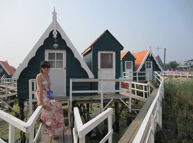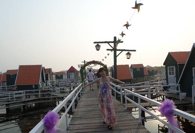 这个是我们住的小木屋,里边没有电扇也没有空调,只有住的和一个卫生间。但是到了晚上有海风的原因还是很凉快的。大美妞看到小木屋就在那边狂照相了。