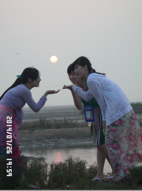 我们坐了4个多小时的车才到月坨岛的小码头,下午的1点多感觉要比北京的太阳更辣,所以大家都把眼镜帽子,全服武装起来。