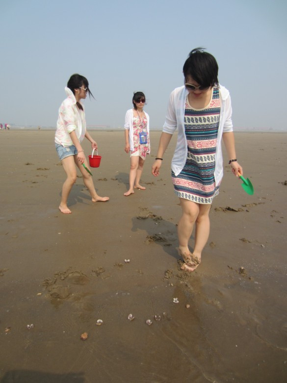大哥带着媳妇大早清儿就在海滩上玩起虫子来了。。。。