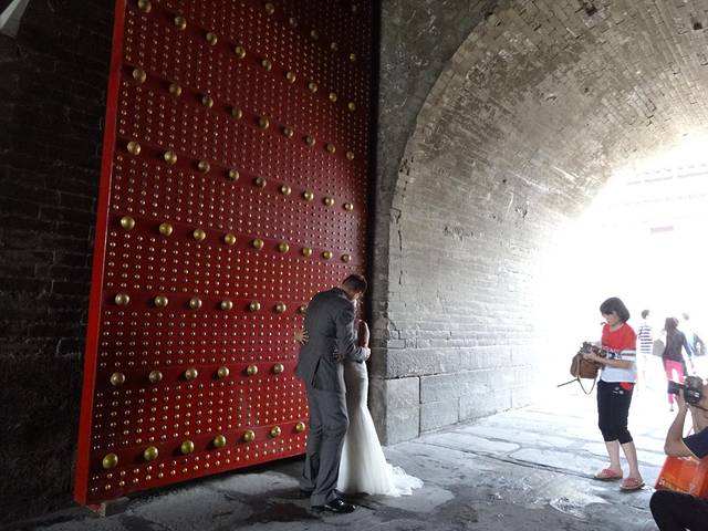 ❤o❤遇到一对新人在城门下拍婚照,美美哒