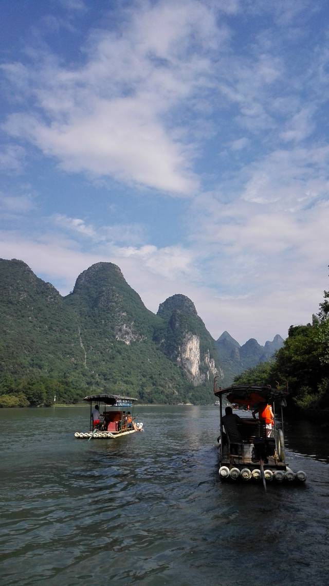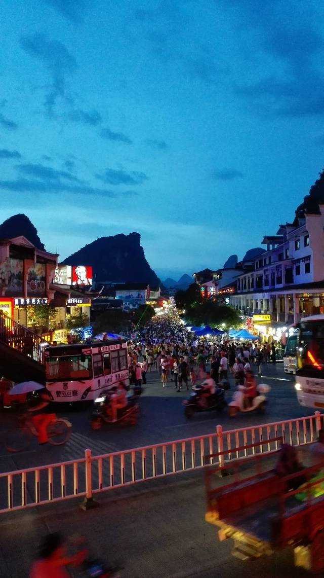 抵达桂林之后 我们报了一个一天游阳朔的团 在去哪儿订的 主要是为了乘坐竹筏游漓江。下午大约四点 我们单独在阳朔月亮山景区下车 根据导游的指示在路边等到了去往阳朔县城中心的车