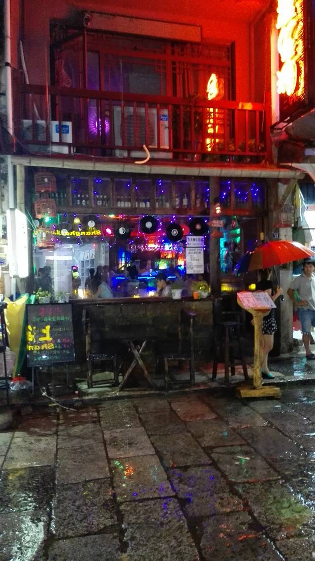 在西街逛着 从店里出来就忽然下了雨 也正好多留住了我们一会 对面的酒吧里的人们丝毫没有因为下雨而减弱热情