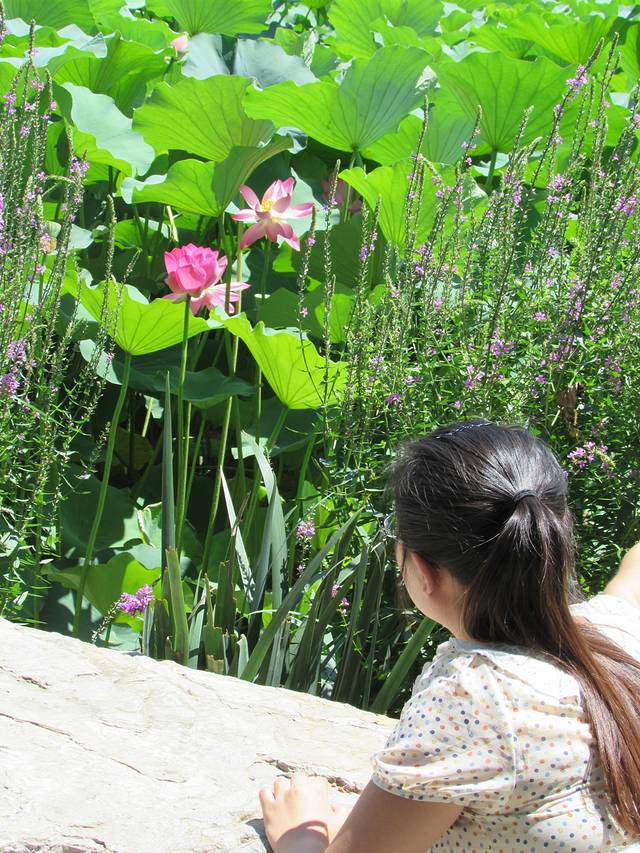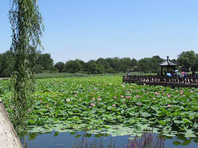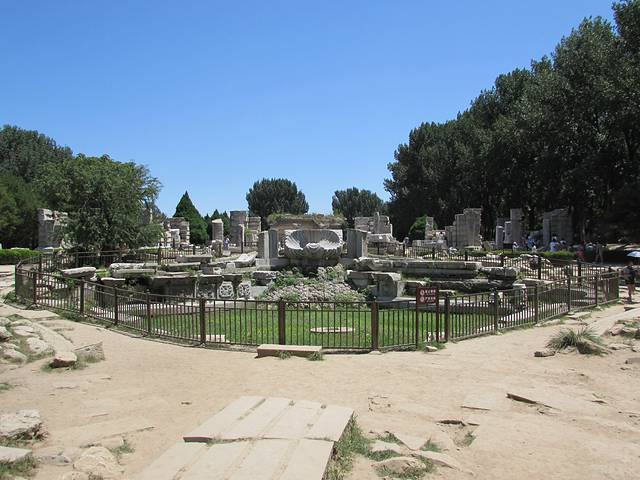 我们的旅馆出门走走就有公交(地安门内那一站)和地铁四号线。因为前一天睡晚了,所以起晚了,所以不能去颐和园了,所以去了圆明园。我们做的地铁,地铁四号线直达,票价两元。圆明园学生票两元。七月的圆明园最美的就是荷花了。