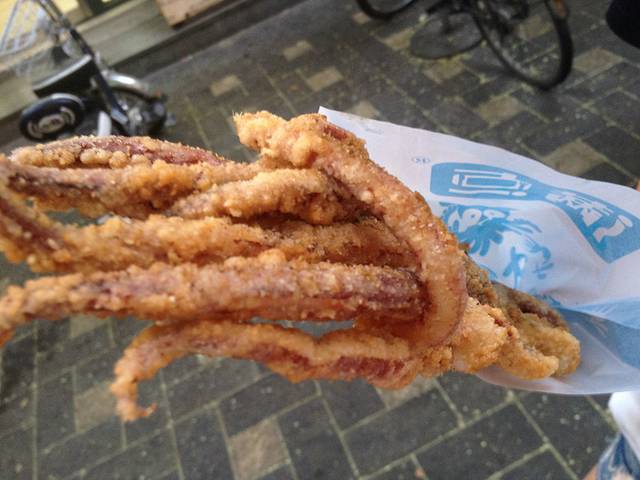 南锣鼓巷去钟鼓楼的路上就有,比脸还大的忧鱿鱼~但是没有我的脸大呢,算不算偷工减料啦~~~
