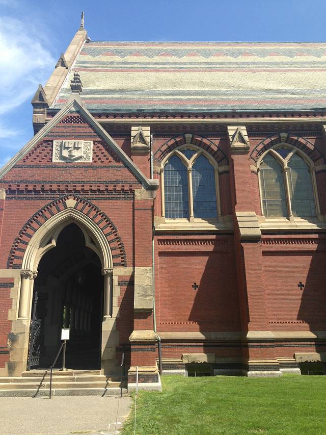 景色优美的大学,面积也很大。有很多有历史风格的建筑,很多学生在草坪上聊天或写作业。