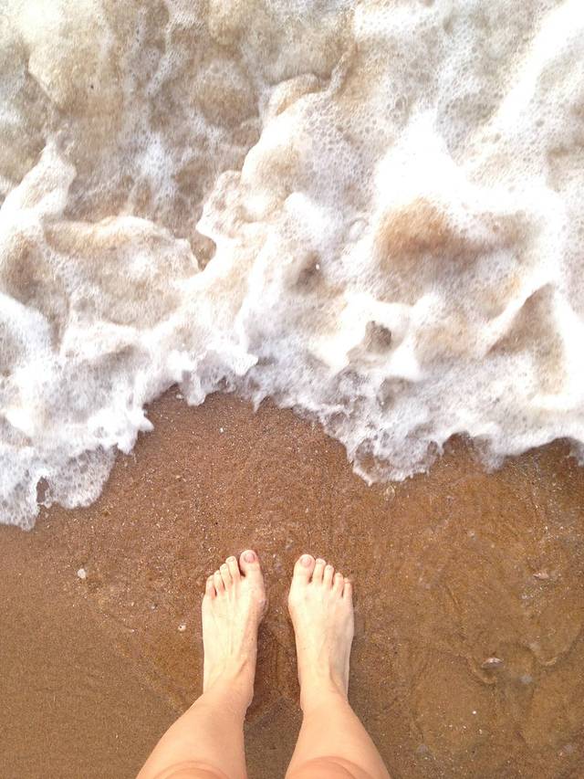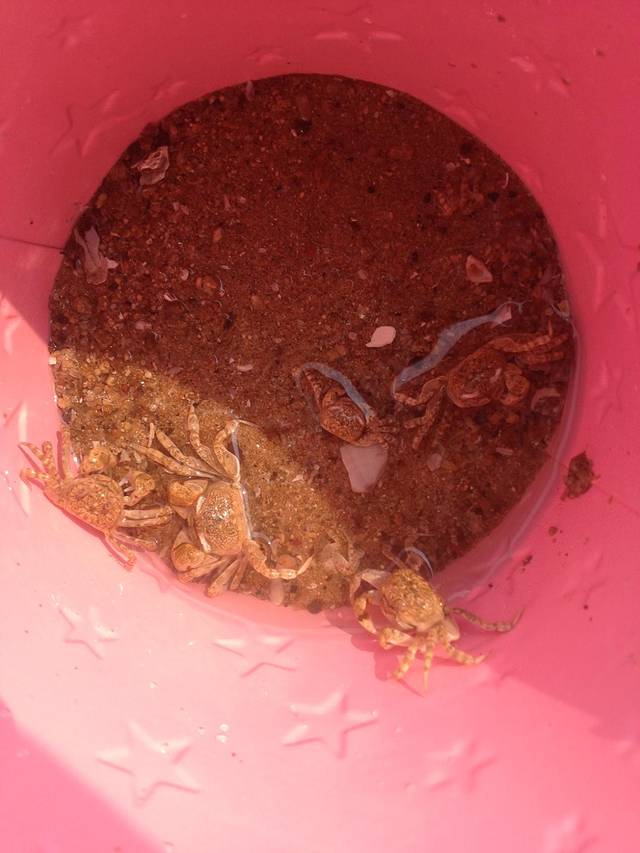 到了海边就后悔没买手电筒了,黑漆漆的一片。不过等适应了这种黑色之后就能隐约看见远处一波又一波的海浪打过来,脱了鞋站在沙滩上,踩着软软的细沙很舒服。不少人还拿着小铲子和小桶捕小鱼。旁边的篝火堆引来许多散步的游客,大家围着篝火唱歌跳舞,很是欢愉。