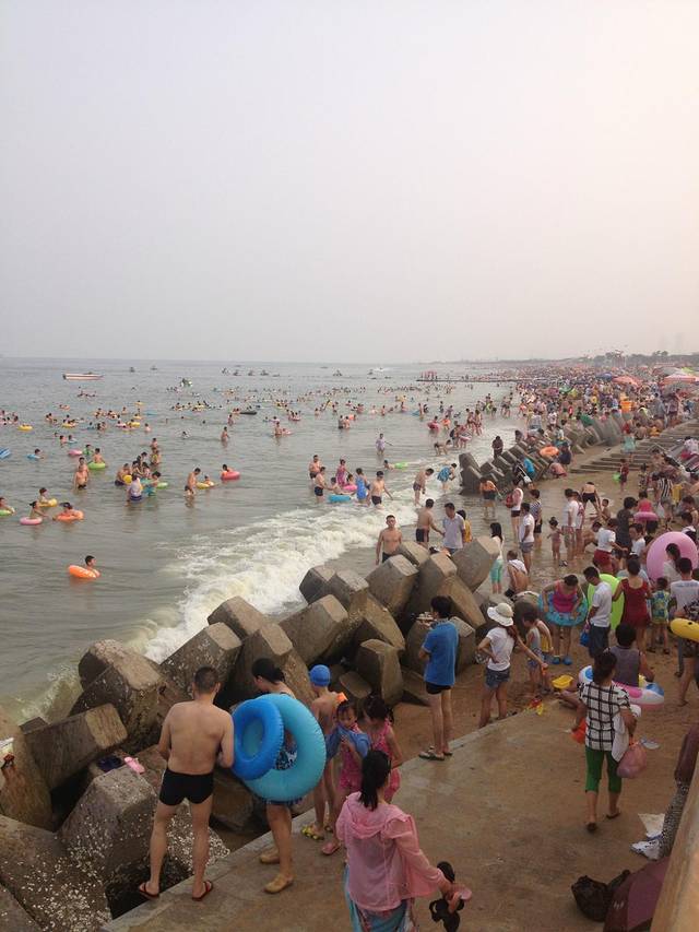 10点多从森林公园回渔家休息,一直到下午4点才出门去了第三海水浴场。本来打算在这里游海泳的,结果到了之后吓尿了好吗!!!这么多人!!! 海水那么脏!!!! 还有绿绿的海草一样的东西在水里漂来漂去!!!! 海里居然还有方便面的桶!!! 这么脏的海水居然还有这么多人在里面游泳!!!!! 天啊~~ 果断掉头走人! 还不如我们住的吴家台那边的免费沙滩干净呢!!!!