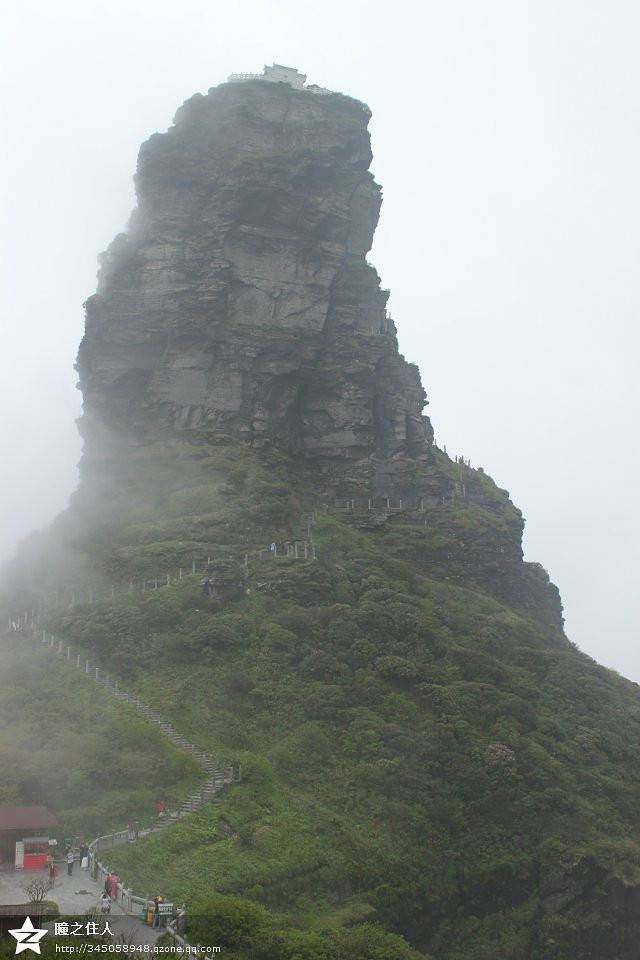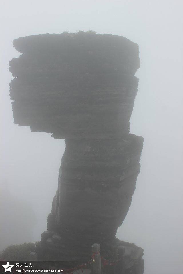 梵净山在亿万年前是大海,石头全是如积木般层层累积叠加而成。累到不行爬到山顶,雾大到完全照不出来。