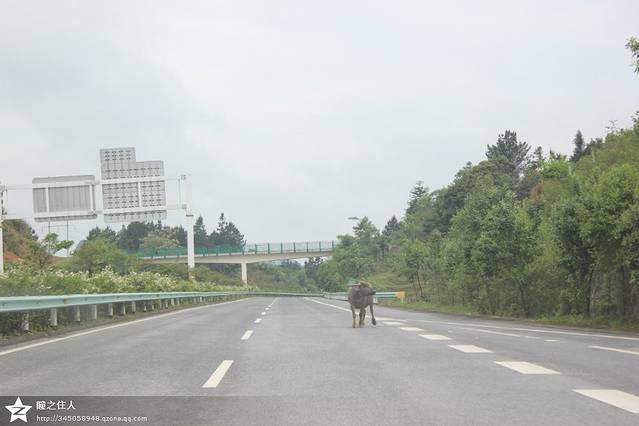 不知道该说贵州是注重生态还是农民太奔放,总是能在高速路上看到自由奔跑的牛。