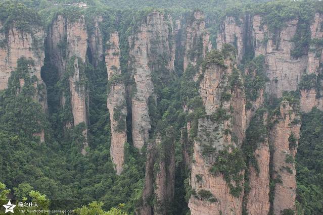张家界门票三天之内有效,于是决定第二天去金鞭溪,从张家界森林公园大门进去,可惜天气不给力,烟雨蒙蒙的,什么都看不见,而且连续的奔波,非常疲惫,于是便决定在张家界逗留一晚上,明天再来。