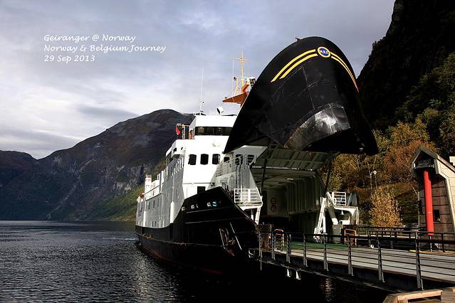 由于多峡湾的自然风貌,渡轮成为不可或缺的交通工具。同时,渡轮也是游览峡湾的不错选择之一。游览盖朗厄尔峡湾,有2条渡轮路线,分别是Geiranger- Hellesylt、Geiranger-Valldal,耗时分别为90分钟、120分钟。我们去的当天Geiranger-Valldal线路停运,只好选择路途较短Geiranger- Hellesylt线路。