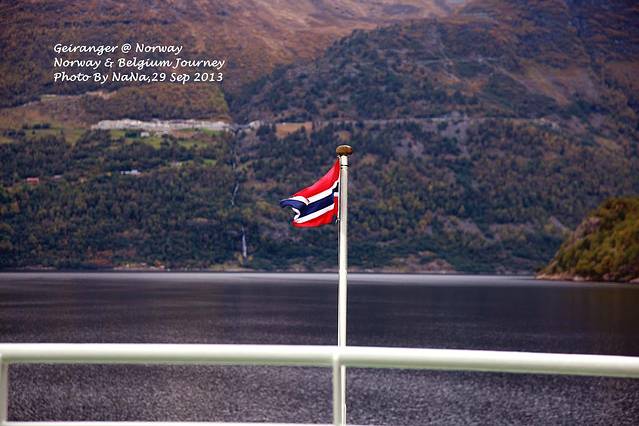 从盖朗厄尔到海尔希特(Hellesylt)这段渡轮,沿途路过新娘瀑布、七姐妹瀑布、老鹰之路等重量级景点。渡轮的设施齐备,餐厅、观景台、洗手间一个都不能少,船舱内有空调,很暖和。沿途有英文、日文、韩文的讲解,可是没有中文。每到一个景点,电视里播放着美丽的画面,广播里是各种语言的讲解。