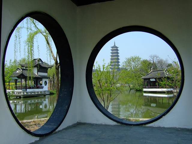 何园的漏窗,不像沧浪亭,而是简洁的几何形,透窗就如相框,增加了层次,增添了美景