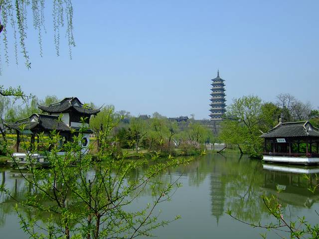这是靠近北门的景区,人少清幽,有类似钓鱼台一样的风景,远处的古塔把现在新修的楼台印衬得有几分古意