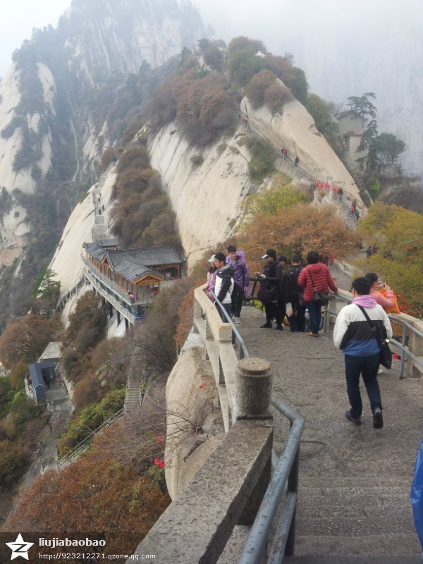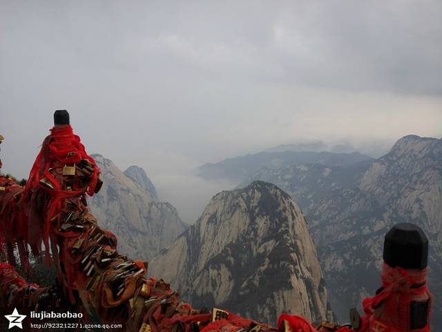 不过我觉得对于第一次爬华山的人建议是,在下午4-6点之间登山,再不是很高海拔的时候你还不会害怕往后看,爬上山顶11-12点之间还可以在山上的小旅店住一晚,第二天调好闹钟起来看日出,这样看完日出之后你就有精神把华山其他4个峰都参观完。我们就是因为爬了20个小时没睡觉,没有精力去把长空栈道走一遍啊~~有点遗憾~~只能下次再去了。下面照片都是我QQ空间里Down下来的~原图都找不见了~~