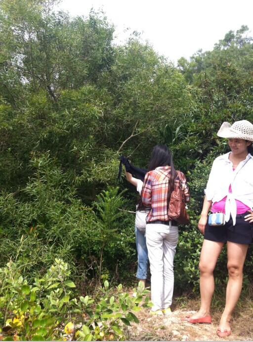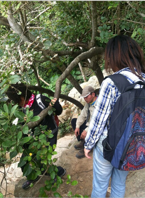 接下来我们该下山到达真正的东涌海岸,这下山的路可谓是第一段惊心动魄的路,需要借助旁边树枝和绳子下山,看我们这些女生还是很勇敢的。