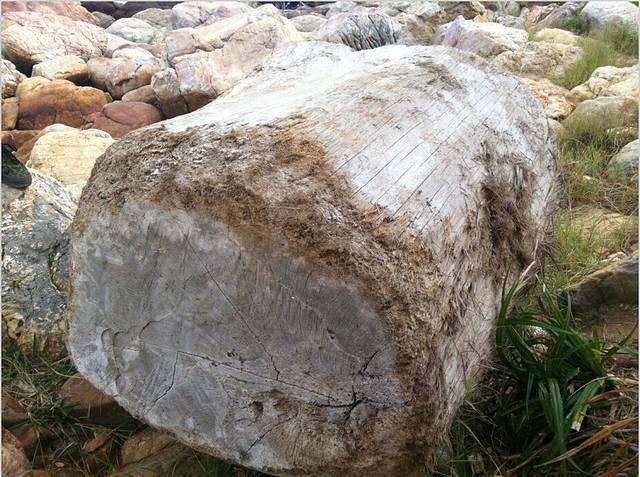 我们到达一处有淡水的地方,这水是从山上流下来的泉水,领队提议煮茶喝,吹着海风,坐在礁石上品山泉水煮的茶还真的是一种享受。在山泉的旁边还孤零零的存在着一截被海水无数次冲刷过的大木桩,模糊的年轮好似在讲述着它的沧桑岁月