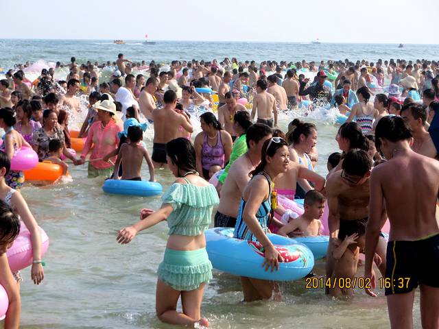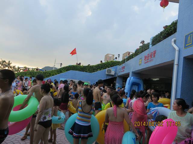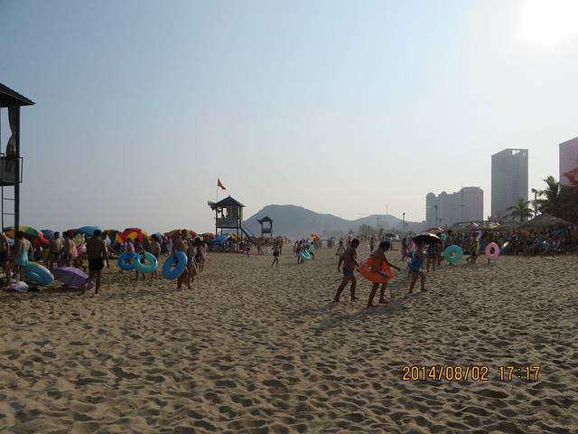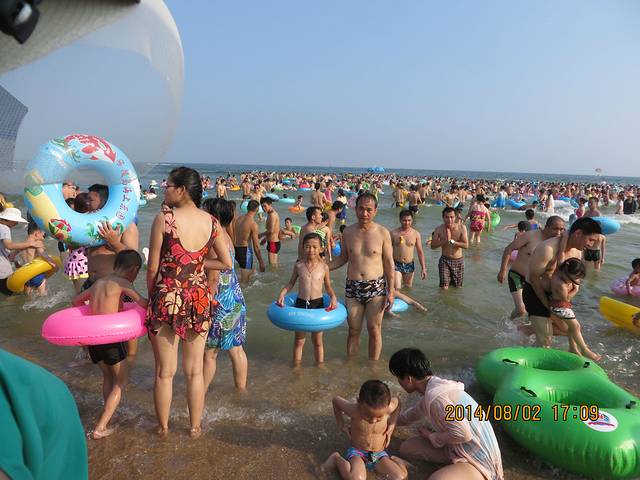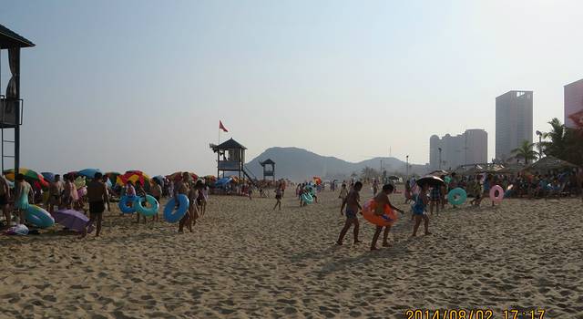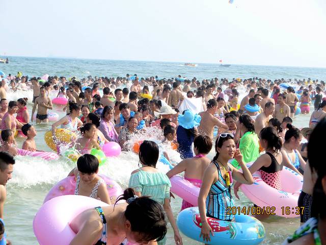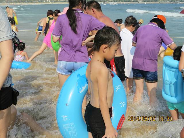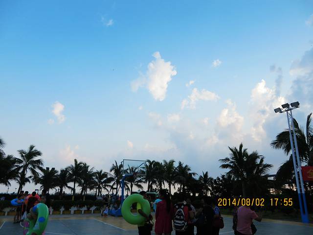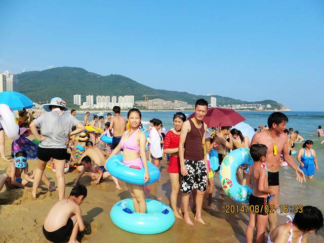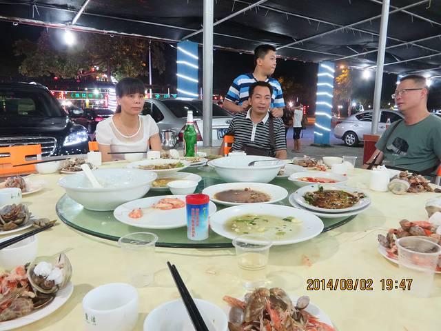 我们去的那天是七夕节,这里有“泼神仙水”过七夕的习俗,所以不管在广场也好,海里也罢,戏水玩耍的人很多。而在前一天,八一节在海陵岛上有海鲜大餐吃。这也是传统。