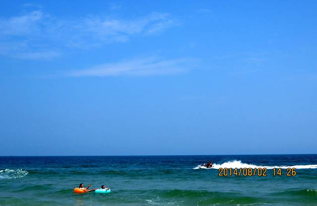 这里沙滩很长,沙子很小很松软,阳光也特别灿烂。滩涂绵长,一直延伸,直到天边。。。天蓝水碧,心情顿时变得美好。