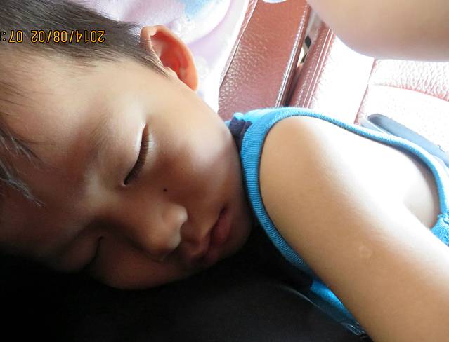 熊孩纸。。。在车上睡了。