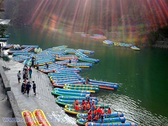 第六天我们去的是猛洞河漂流,RMB238,含门票和往返的车费。早上7点半,负责猛洞河的导游和车就到酒店接我们了,这点很好哦,大概一车有20来个人,我们乘车约2个半小时到达了猛洞河门票站,我们去排队,导游去帮我们出票,大概20分钟票就到了我们手上,很顺利,就上了船,漂流大概2-3小时。有险滩,有急流,有水仗,有大太阳,有瀑布,有短暂的无聊和困倦。漂上来之后车拉到芙蓉镇,芙蓉镇门票80,想着马上就去凤凰了,就没进去,吃了碗米豆腐,赶赴凤凰。