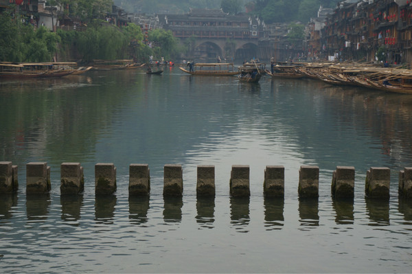 芙蓉镇坐小面包车(他们叫公交车)到汽车站,从汽车站有直接到吉首的汽车,23/人。坐能有2小时到吉首,从吉首有大巴到凤凰,依旧是RMB23/人,1.5小时。根据叶子的线路提示,我们一下车就给客栈的老板打电话,根据老板的提示,从凤凰下车后有1路公交车,坐到叫什么桥的(现在记不起来了)然后老板已经到那里等我们了,很顺利的我们就到达了客栈。门票是没有收的,我们进入凤凰古城的时候根本就没有看到有收门票的地方,稀里糊涂就进入古城了,待发现如此繁华美丽的时候一问,早就已经身在古城中了。跟团游是一定要买票的,门票RMB148,包括沱江泛舟,沈从文故居,熊希龄故居等一些景点,小鱼都没有去了,好好的呆一呆就满足了。凤凰的客栈还不错RMB148,其实凤凰不需要提前订的,除非是旅游旺季,淡季江边就有很多客栈空着的,完全可以到了以后再慢慢找,不过提前订了个人觉得安心一些。