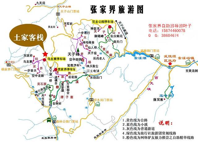 第四天,下了整整一天的雨,本来计划早晨去老屋场,结果由于第一天太累了,直接睡过去了。本来想着雨停了再出去,但是张家界的雨,真的是密密麻麻的下了整整一天。早晨9点左右买好雨衣,缠好鞋子我们就出发了。从丁香榕村口坐观光车到乌龙寨,走,张家界的主要任务就是走,上来下去,不亦乐乎。路线如下