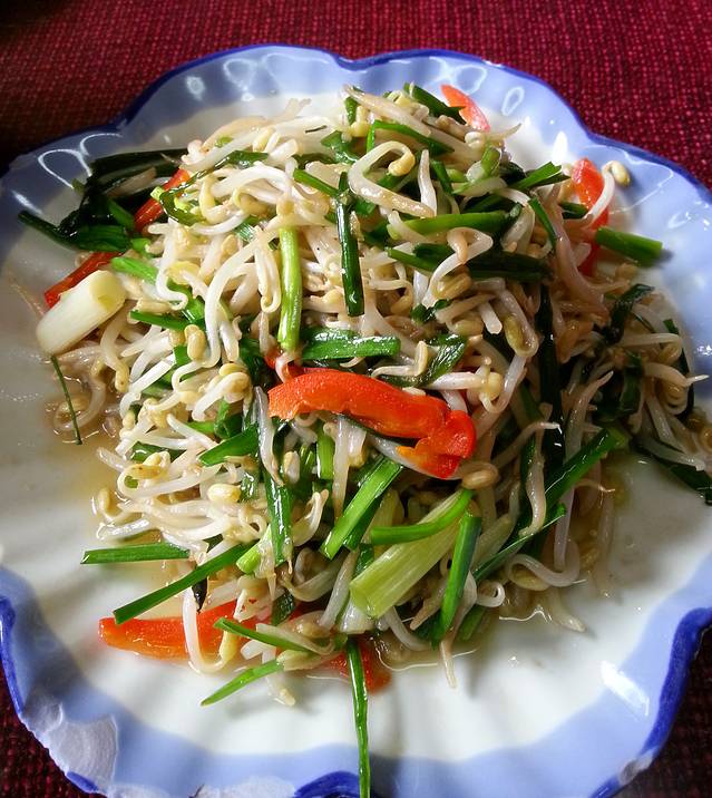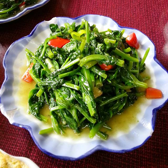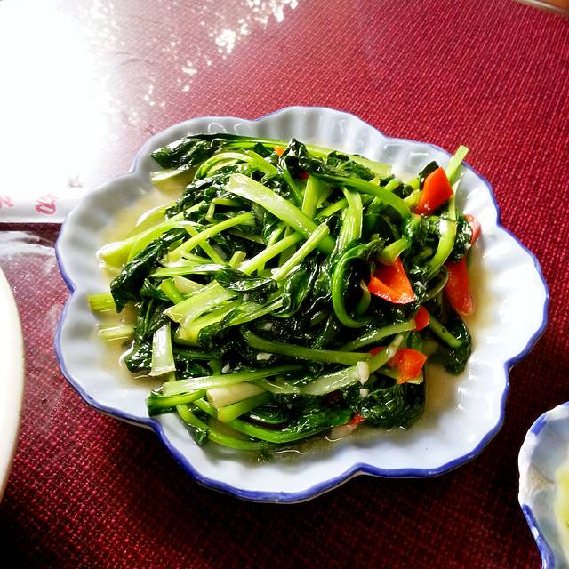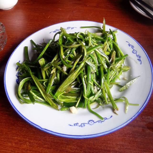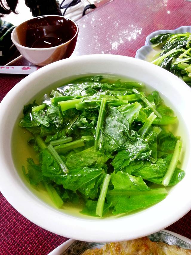 很特别的菜,叫"水性杨花",挺好吃的.听说是长在拉市海的湖里。明天就能看到了。