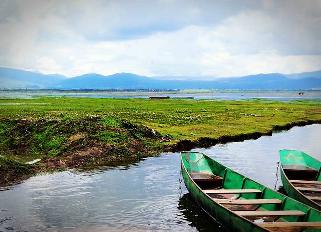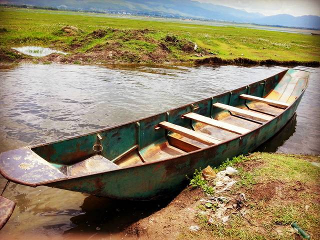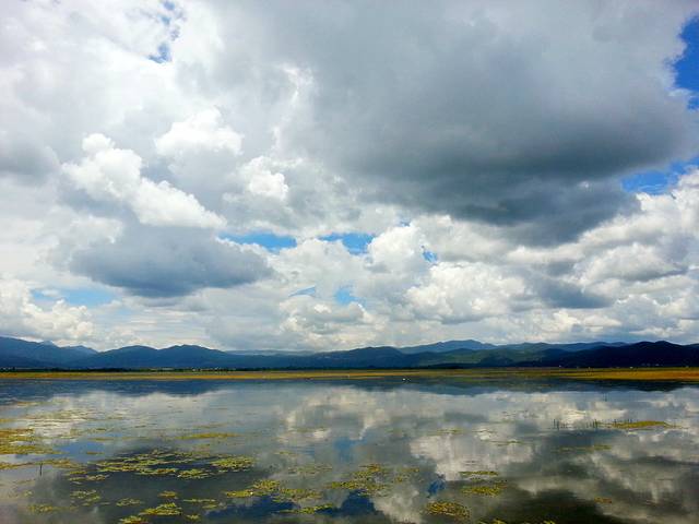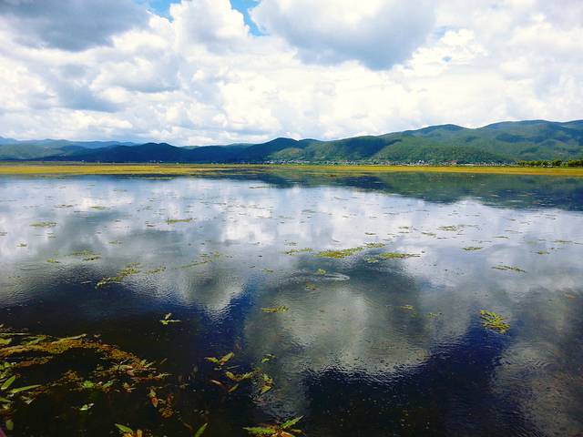 拉市海是一个湿地公园,我们是来坐船游湖的,只因太多人,船夫不够,要在烈日下等真不是件美事。这里的水很清,能看到河里的水草,