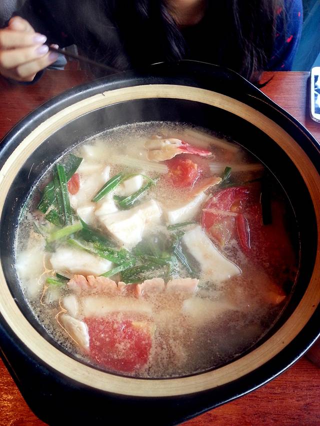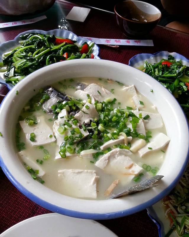 鱼骨、豆腐、番茄等做的汤很鲜美。