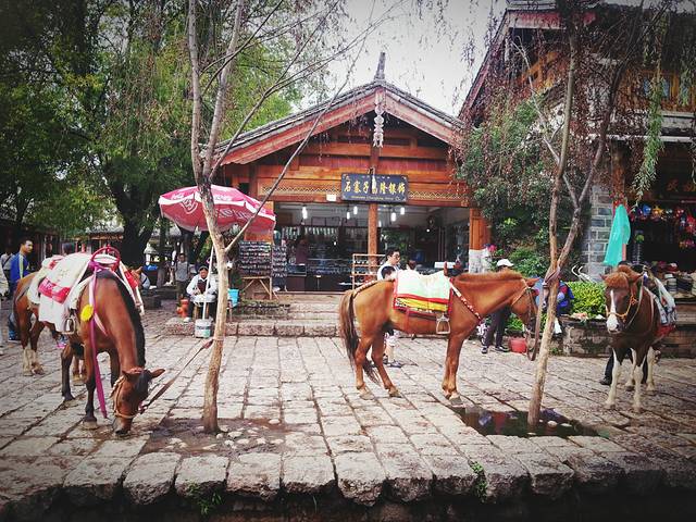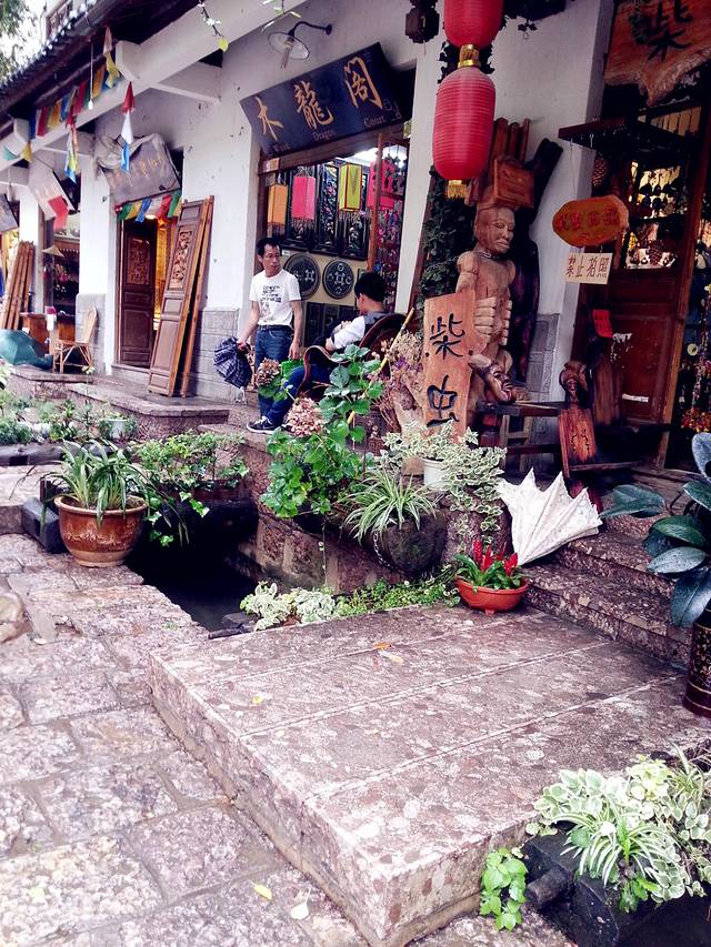 束河比大研小多了,感觉比较脏一点,因为里面有马骑,路上有马粪。还有就是水也好脏,有些小食店围起来养鱼,又多垃圾。