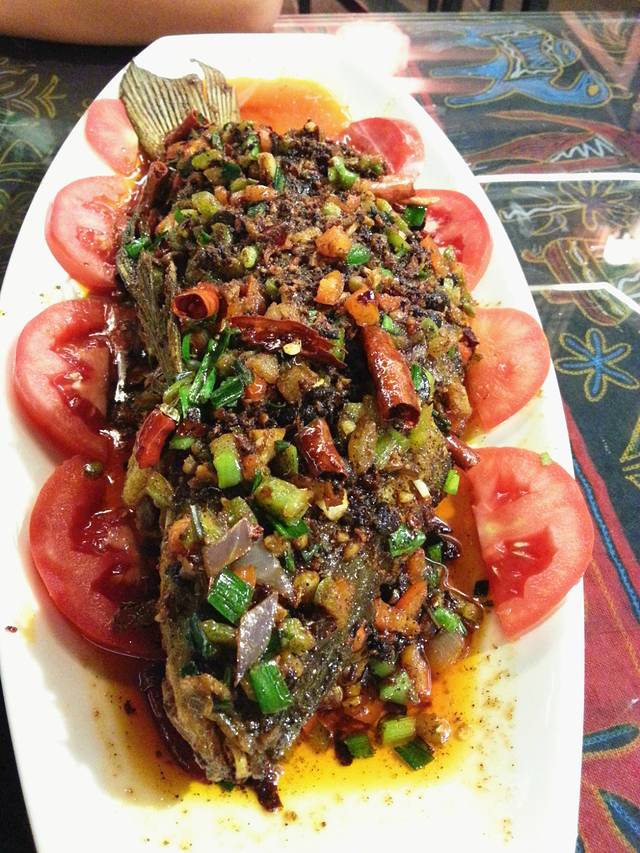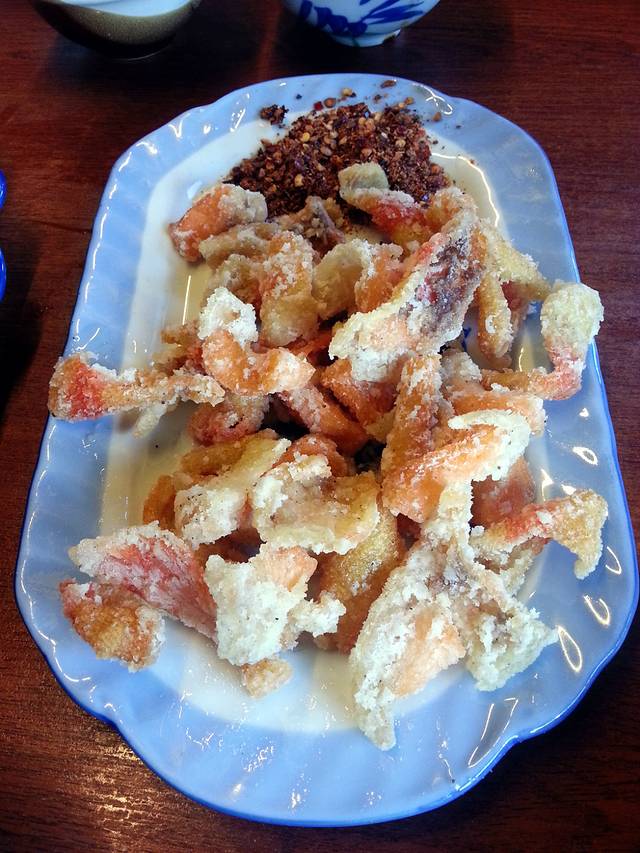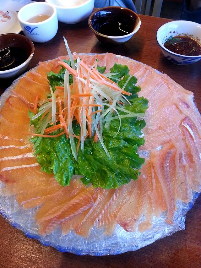 终天吃上传说中的丽江三文鱼了,一鱼三食,这是刺身,跟我们平常吃的三文鱼不一样。