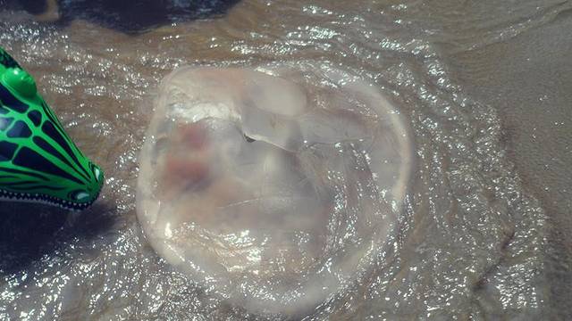 【重点来了】这是水母是刚从海上弄上来的,还蛰人的,好多人都被蛰伤了,当地人说用白矾一抹就不疼了,所以来着玩还要自己备写白矾比较妥当的