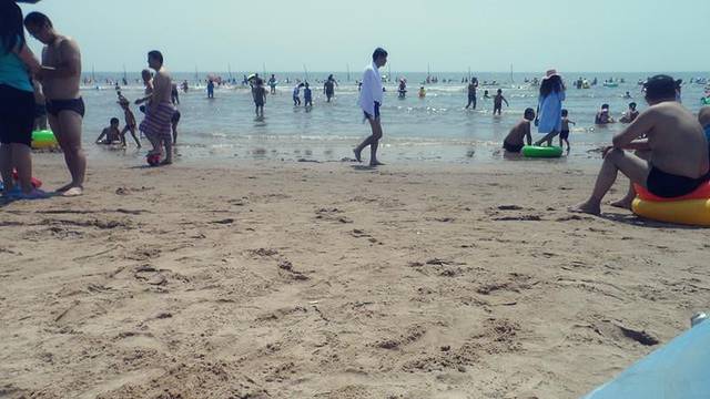 换好衣服来到游泳的海边,海上人还是挺多的,特别强调一下,里面真的超贵的,上个厕所还要2元的,厕所里面超简陋,瞬时感觉人生都不美好了
