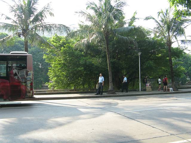 巴士把我们放在路旁我们打车自己找地方 这里的出租会先问去哪里然后选择性的拉客 虽然不是所有的车都问但大部分是