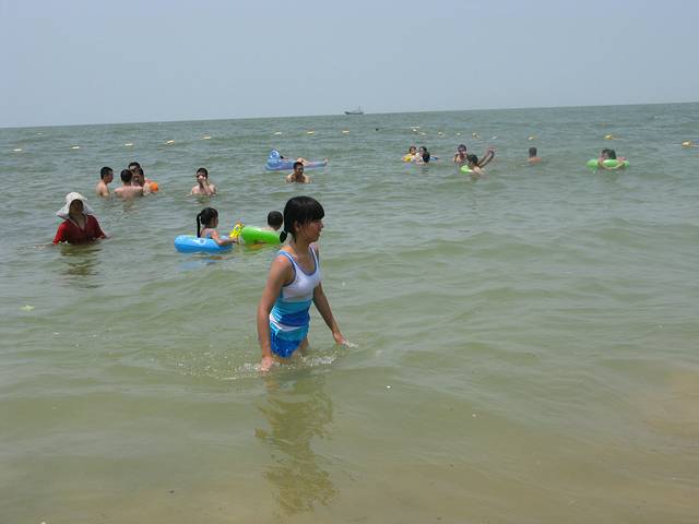 下了船到岛上坐着电瓶车到南沙湾 可以下海喽!!