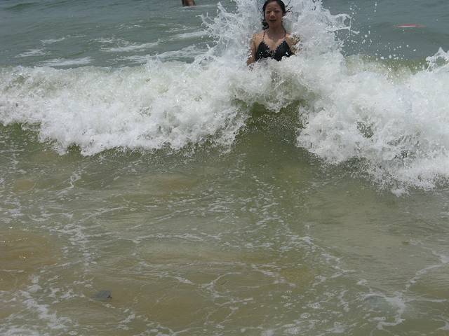 浪很爽的 一个接一个 中午有一阵子浪好大好大 很好玩!