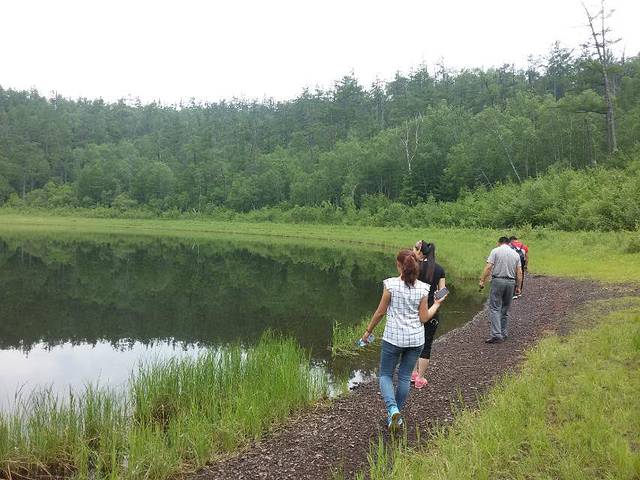 我们来到天池边上,传说绕着圆圆的天池走上一圈许愿很灵的。