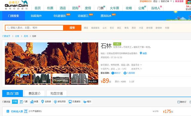 石林门票90-100左右,去哪儿网上就可以预定